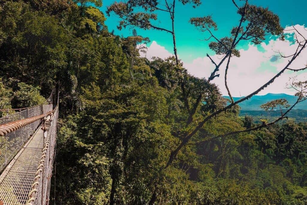 Tour Hanging Bridges, Arenal and La Fortuna region offers you the possibility to observe nature from above. The Hanging Bridges provide this opportunity. Enjoy exploring the rainforest trails and several hanging bridges located on a network of trails and paths. This is a fantastic ecotourism and adventure tour. This tour consists of a hike through a primary rainforest where you will be at different heights and see a lot of flora and some fauna such as mammals, spiders, snakes, insects and birds. In total we will pass through 6 hanging bridges and 10 rigid frame bridges, this place has a spectacular view of the famous Arenal Volcano!