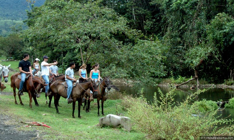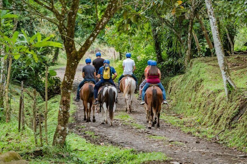 Horseback riding in Costa Rica is a favorite activity for travelers. On this horseback ride to La Fortuna waterfall and the replica of the indigenous village, you will see the spectacular Arenal Volcano and the dormant Cerro Chato volcano in the distance, with beautiful green scenery all around. The horses are robust and friendly, bred for tourism and well adapted to the humid, jungle environment of Costa Rica. This is a slow and easy ride to the waterfall, making it perfect for first-time riders, families or people who really want to soak in the surrounding natural beauty. Your guide will point out the wildlife and you can take in beautiful views of the green countryside and the impressive Arenal Volcano.